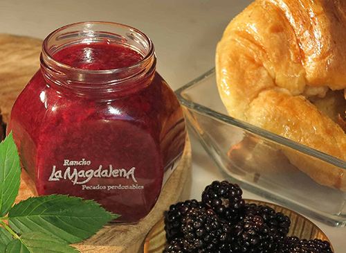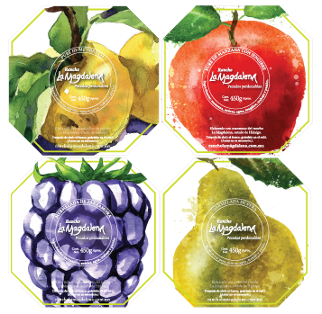 Productos artesanales a base de fruta. La aplicación de la marca al envase es grabado para permitir que los tarros sean retornables. Esto permite ahorro en costos, evita la generación de desperdicios y ofrece beneficios al consumidor.