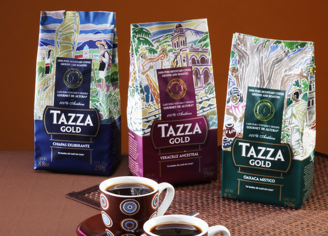 El diseño de Café Tazza abarcó la solución gráfica de dos líneas de producto: Tazza y Tazza Gold, este último con tres variantes dependiendo del origen del grano: Veracruz, Chiapas y Oaxaca.